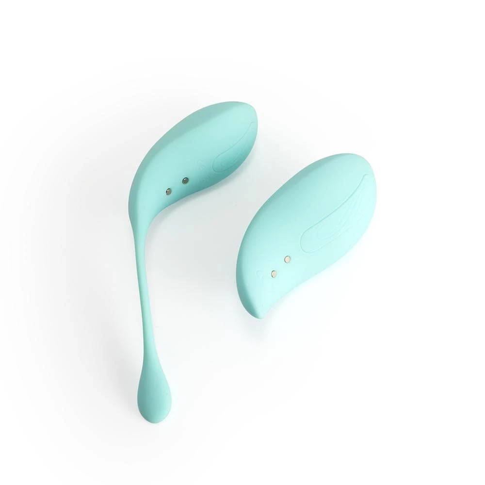 2 in 1 set sucking vibrator consists of 1 suction vibrator and 1 vibrating egg, which has 7 intense suction modes and 12 vibrating intensities. These turquoise vibrators can be used together or separately. The sucking vibrator can wireless control the opened vibrating egg from a maximum distance of 10m. Product is made of flexible medical degraded silicone, the vibrating egg has a tail for removal safety.