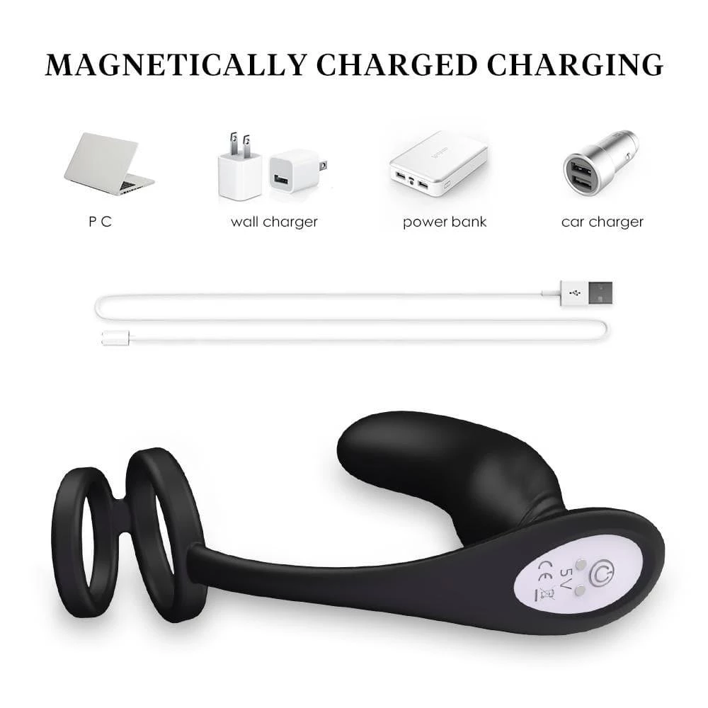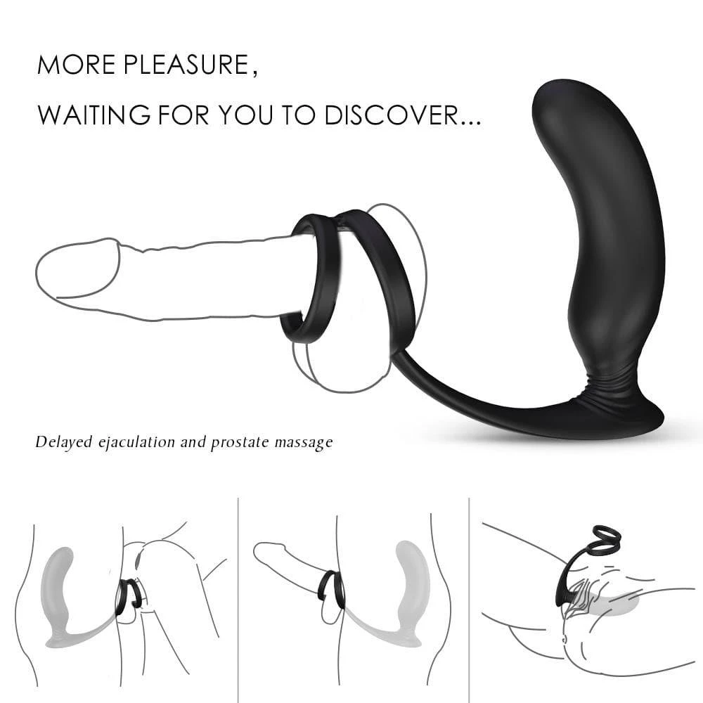 Gain multi stimulation through banana-shaped prostate vibrator and penis-testis rings.