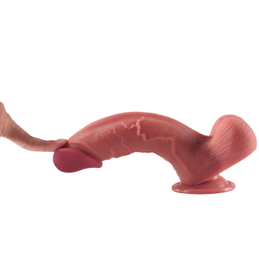 Featured in blushing flesh skin, life-like glans, raised veins and bulging balls, this realistic dildo is always erect to please you with strong but gentel stimulation.