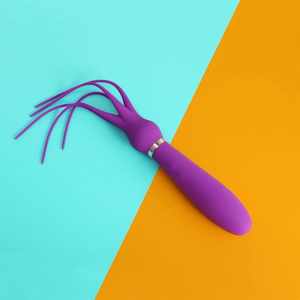 Octopus-shaped vibrator is a unique one you ever see. 2 in 1 designed vibration is not only a vaginal stimulator, also a mini flogger, its 5 soft tentacles give a thrilling whips experience, perfect for couple play or self-play.