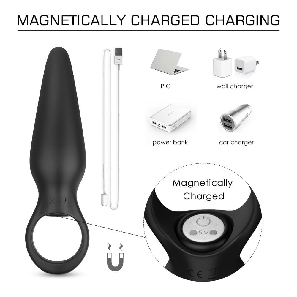 Lightweight, compact and the perfect size for travel, this vibrating plug is simply genius. Take your pleasure on the go and enjoy a truly versatile vibrator. Featuring a removable, rechargeable bullet vibrator, you can use this toy as a traditional vibrator, cock ring, butt plug or dildo.